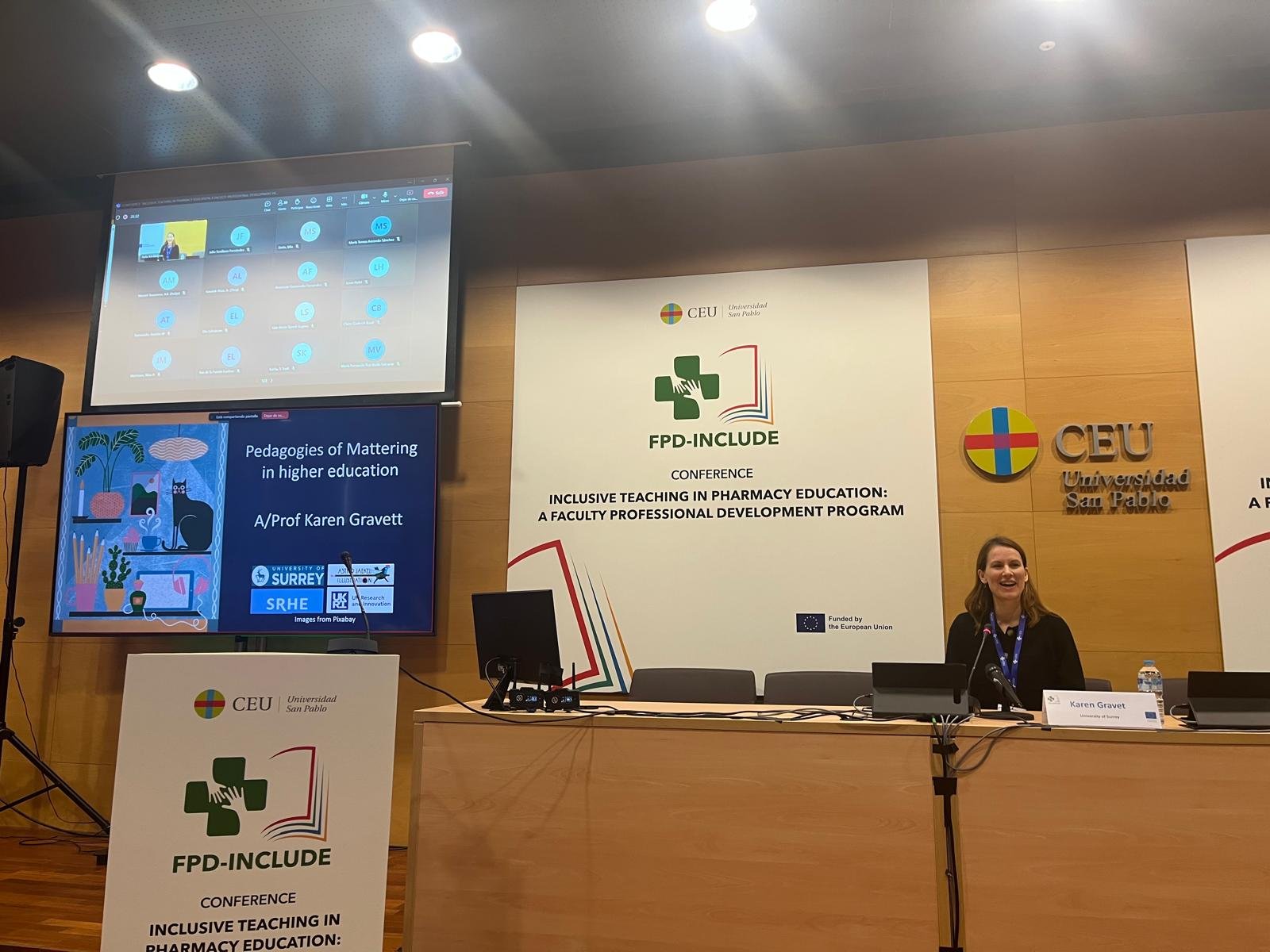 Over 120 participants joined the FPD-Include COIL Conference at CEU Madrid—onsite and online—to advance inclusive pharmacy education together.